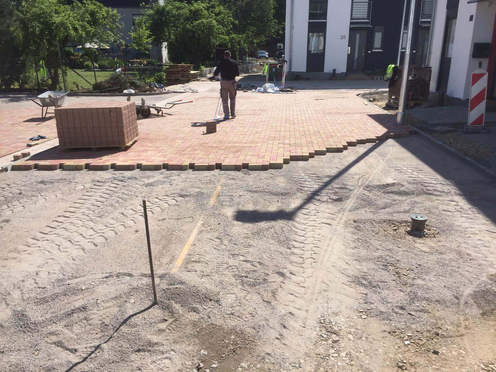 Am BVH Hemichs Wiesen, in Velen laufen die Pflasterarbeiten.